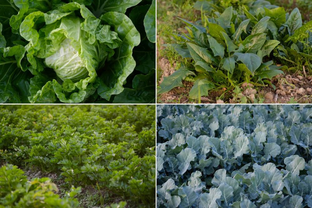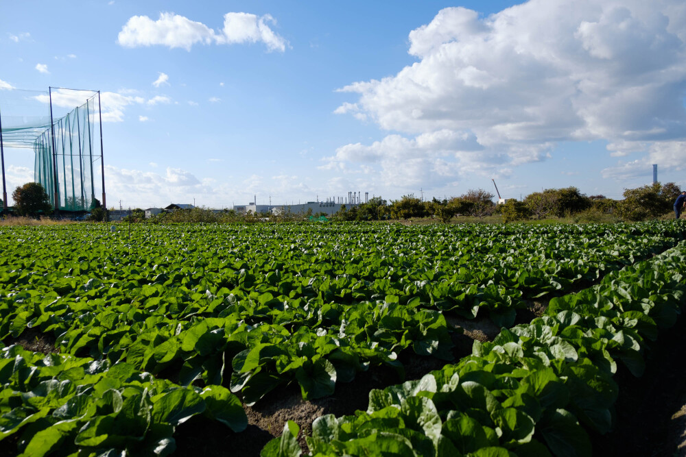 取材当日も、畑にはハクサイ、ブロッコリー、セロリ、ほうれん草など、様々な作物が育っていた。
