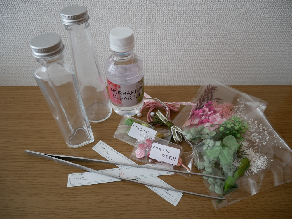 ハーバリウム作りに必要な材料は、キットの中に一通り揃っています。