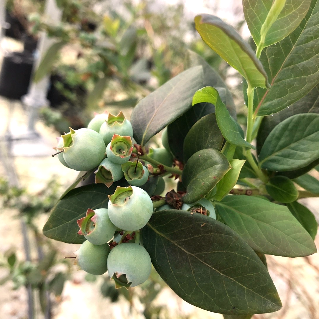 「大粒ブルーベリーが熟し始めて」