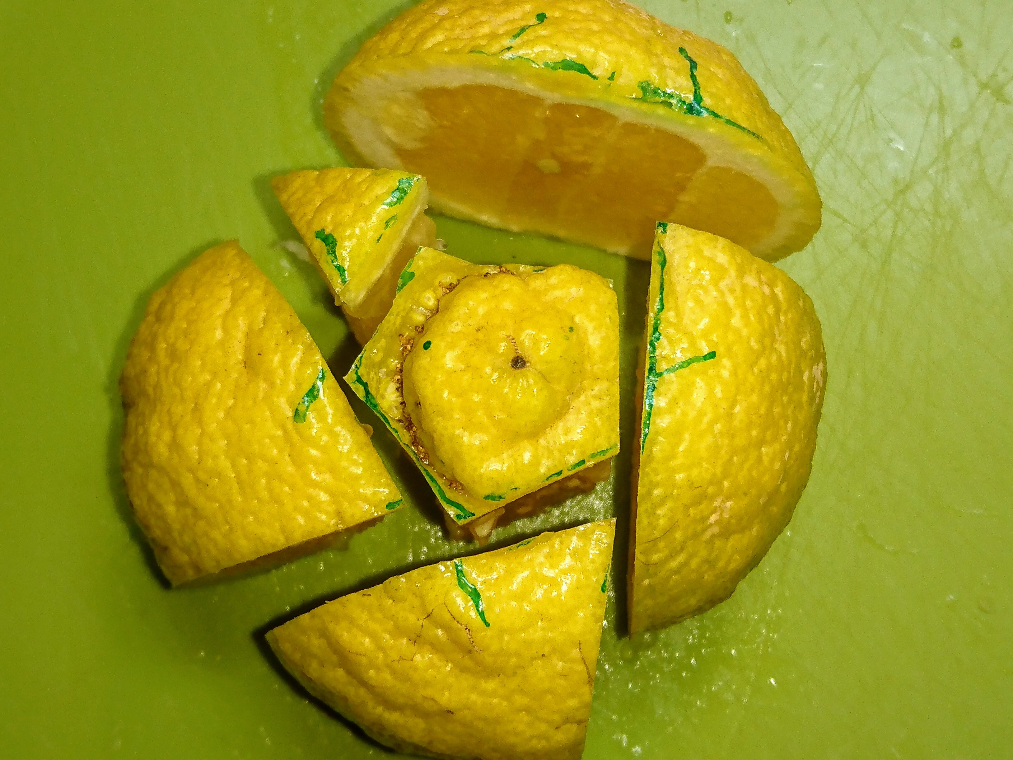 柑橘盛り合わせにオマケで入っていることのある【はるか】は、真ん中を残してナイフでカットすると種がなく食べられます。