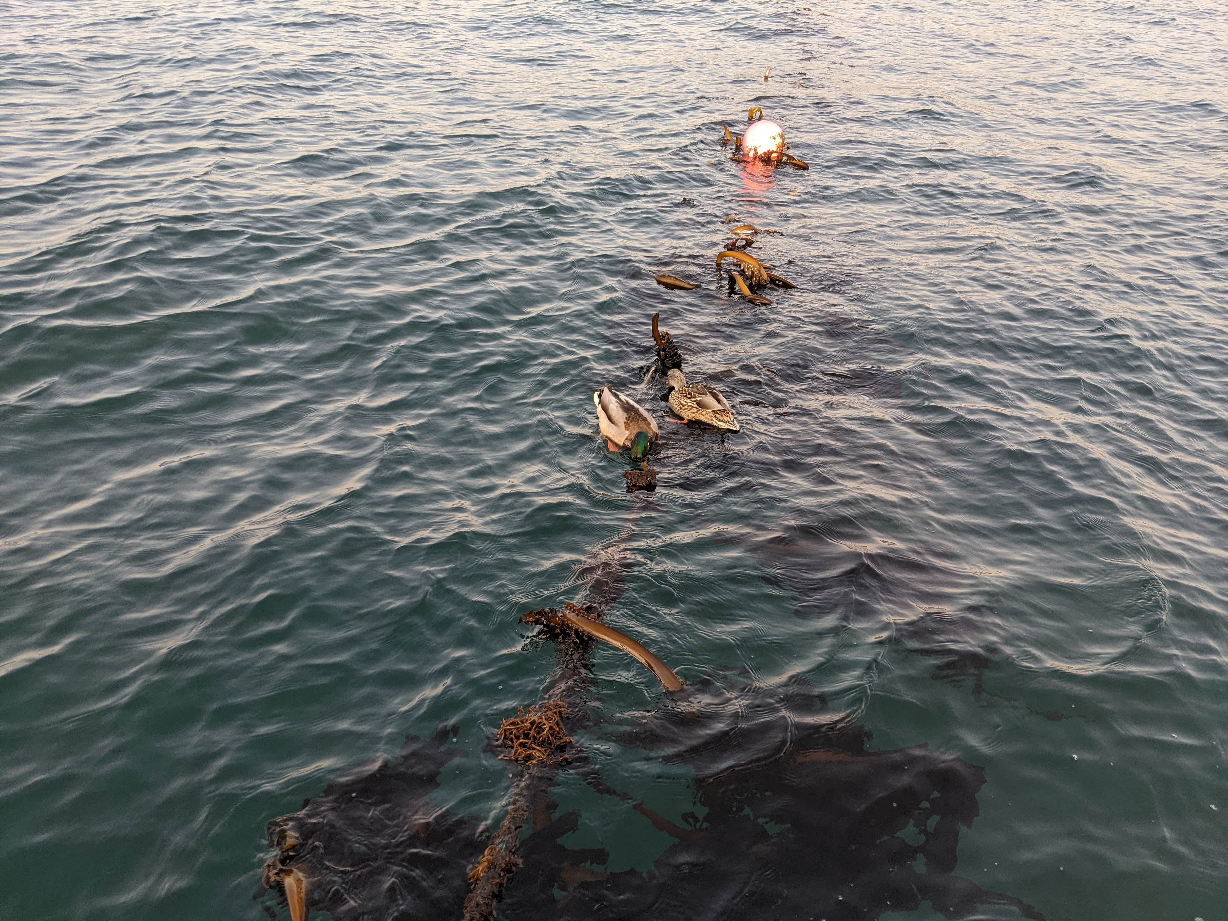 ワカメ刈りしていると、決まってカモが仲良くペアで来ます。