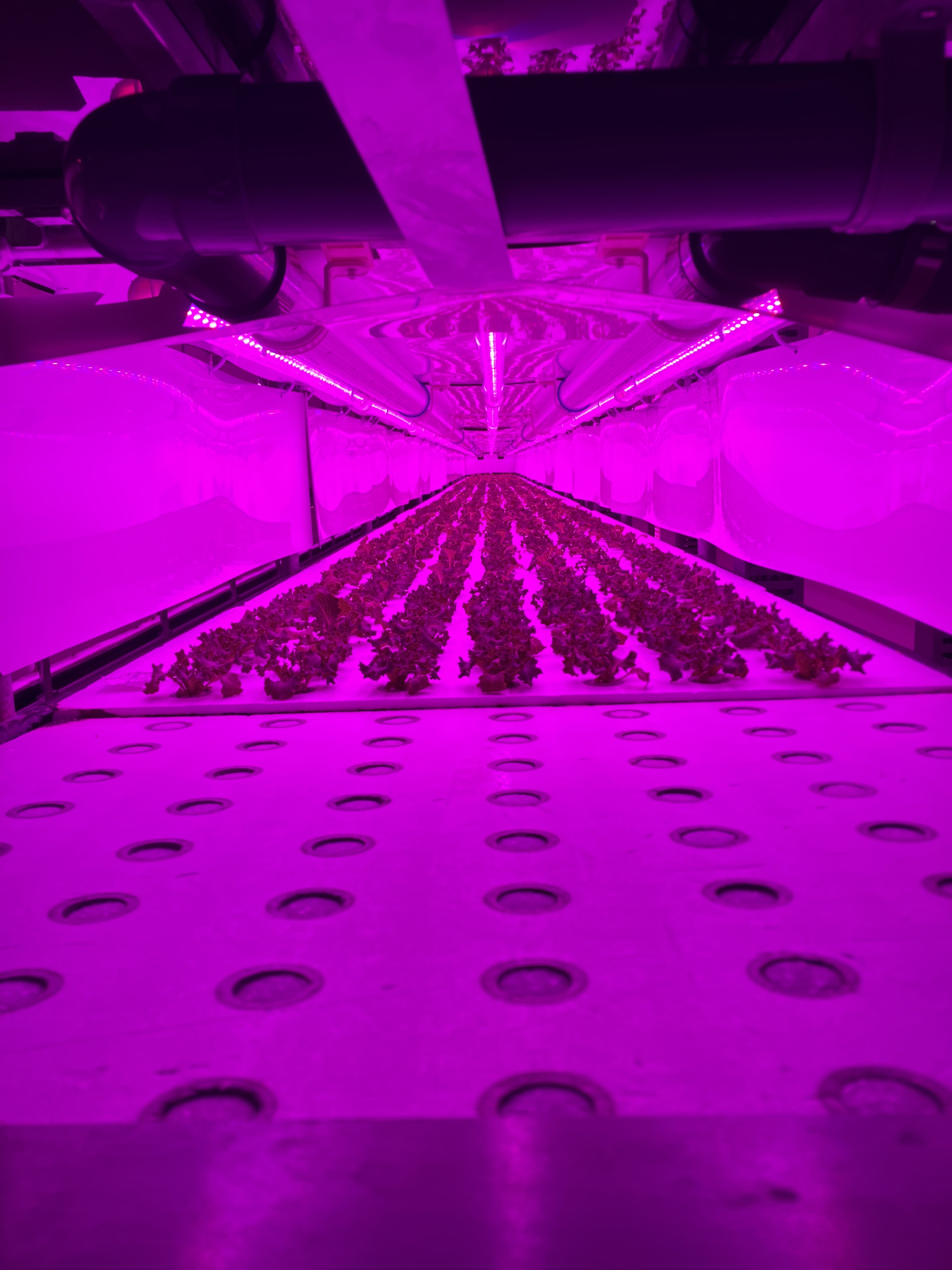 白いプレートの下には養分の入ったお水が流れています。沢山の栄養を吸い上げて、美味しいレタスが育って行きます!!
