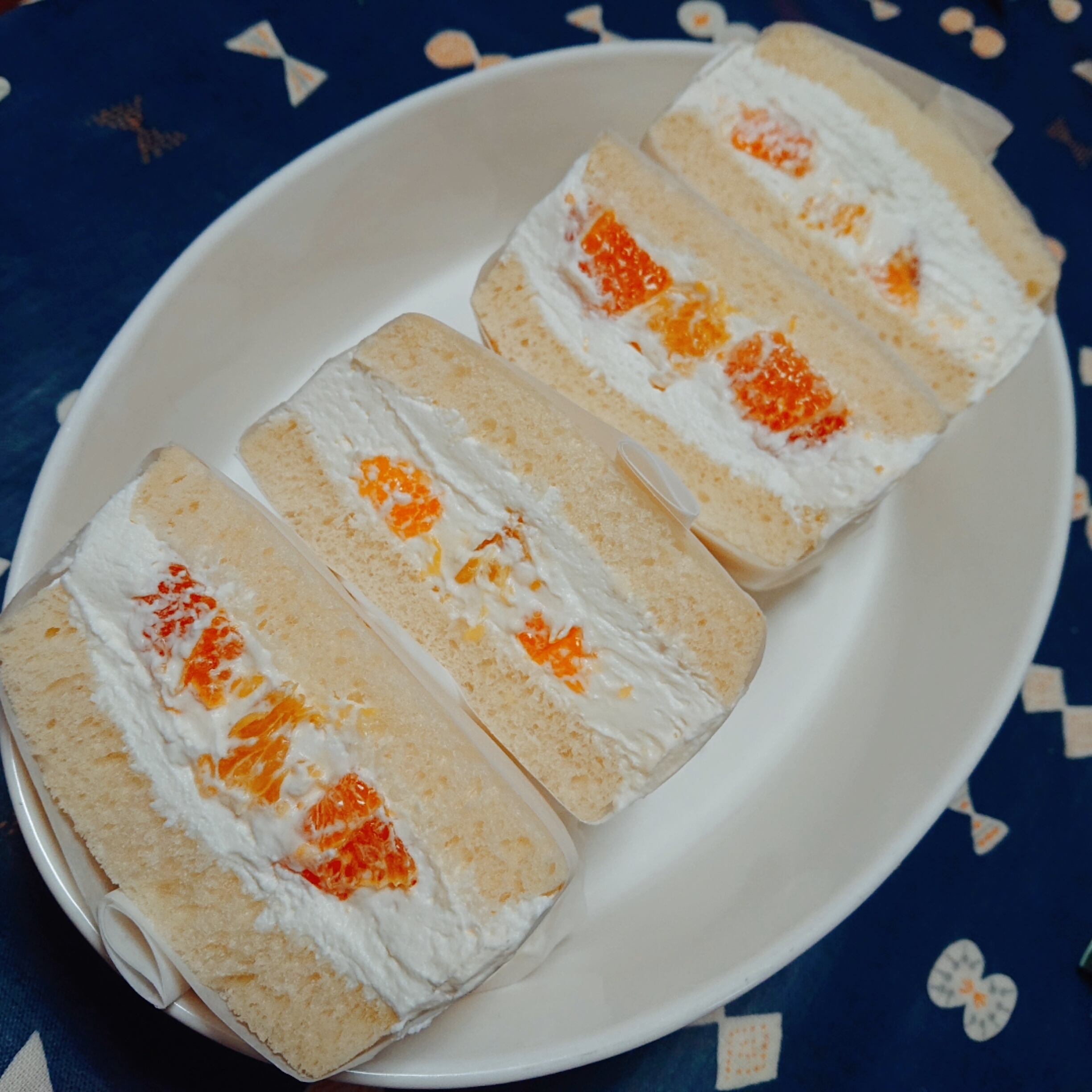 せっかく持って帰ってきた清見オレンジが放置されてたので... 自分用にオレンジサンドを作りました✨