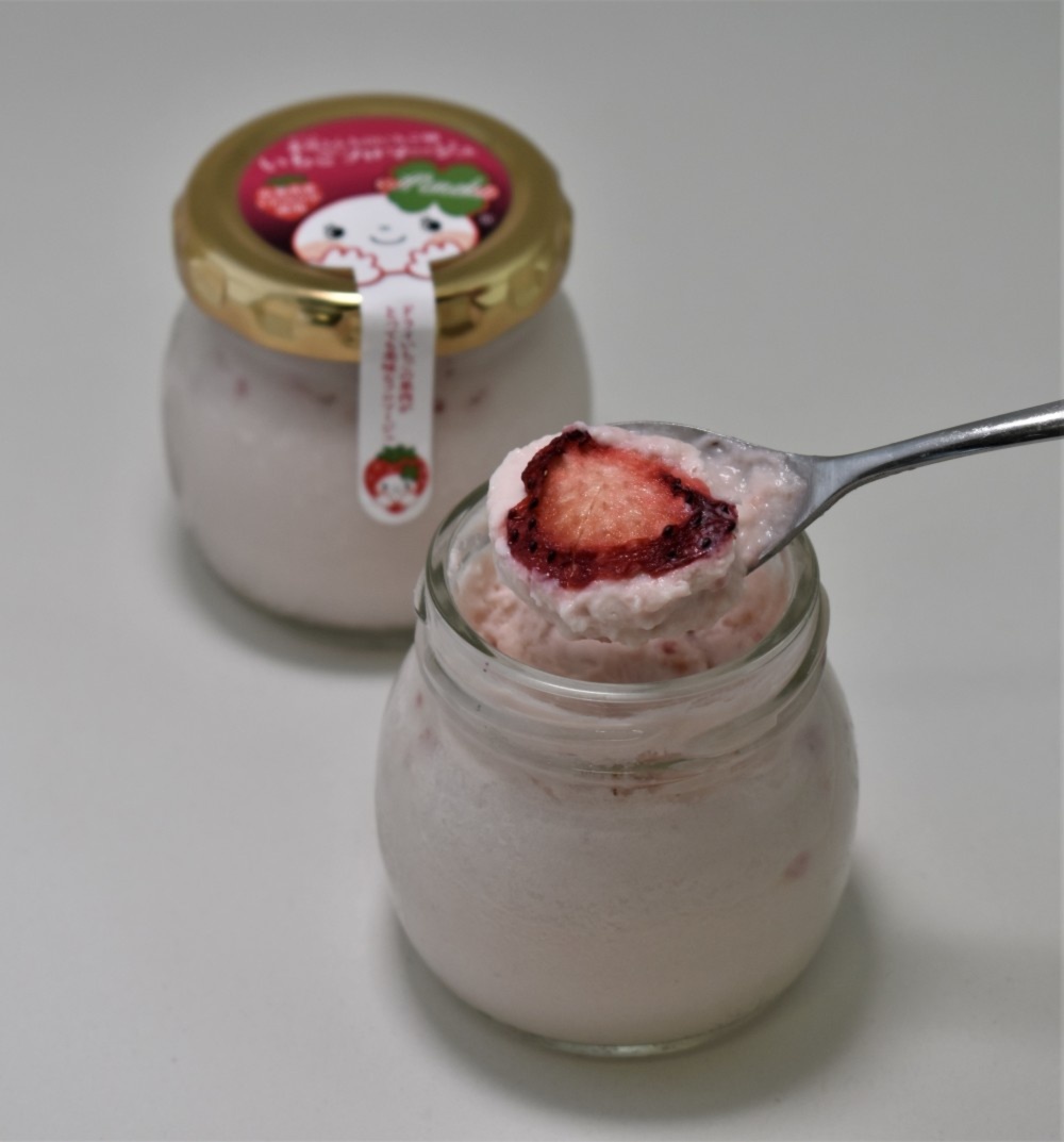 ひと瓶に4〜5個分のいちごを使っているそうよ。