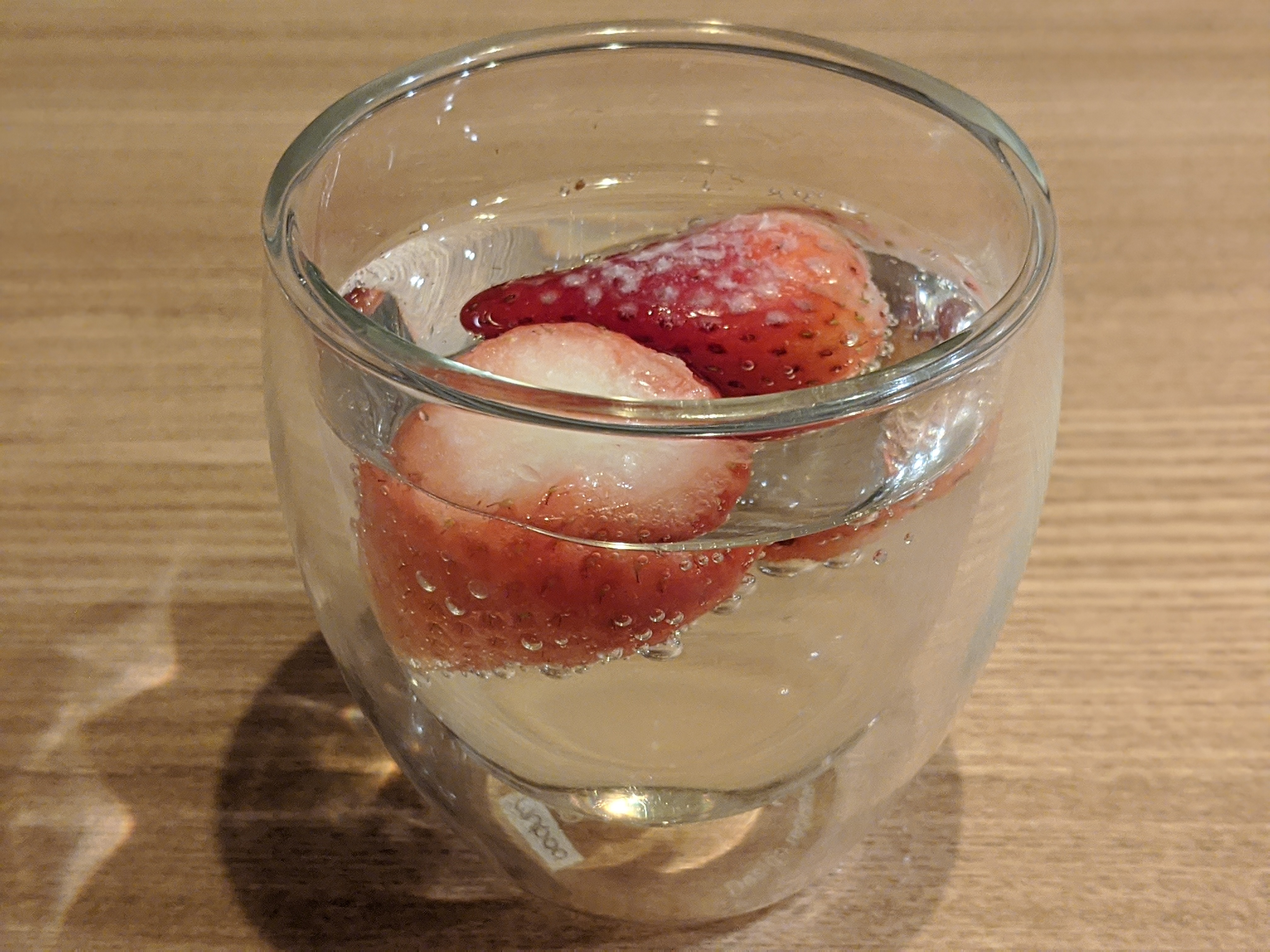 いちごが一個一個大きく、美味しかったです。氷の代わりに炭酸水に入れてもよかったです。