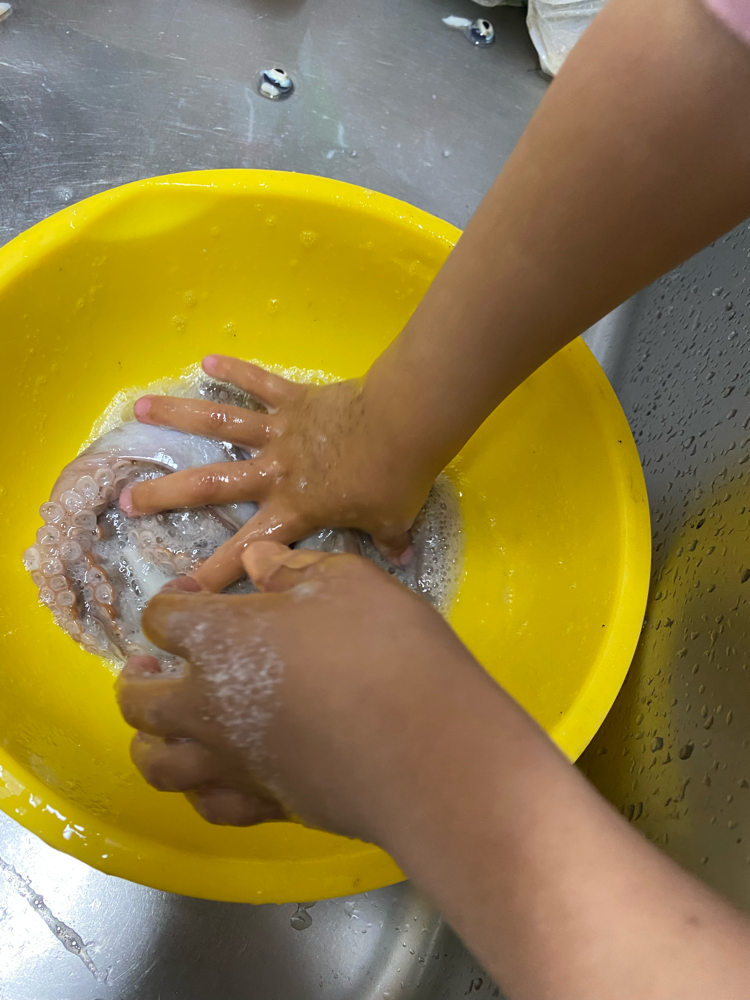 初めて触れたコウイカ、真っ黒になりつつ子供達と楽しく捌きました。