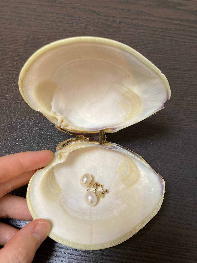 ホンビノスを注文しました。SSサイズを頼んだのに、おまけで一個こんな大きいサイズをつけていただきました。ありがとうございます。嬉しかったので食べた後の貝殻を洗って真珠を入れてみました。ごちそうさまでした!