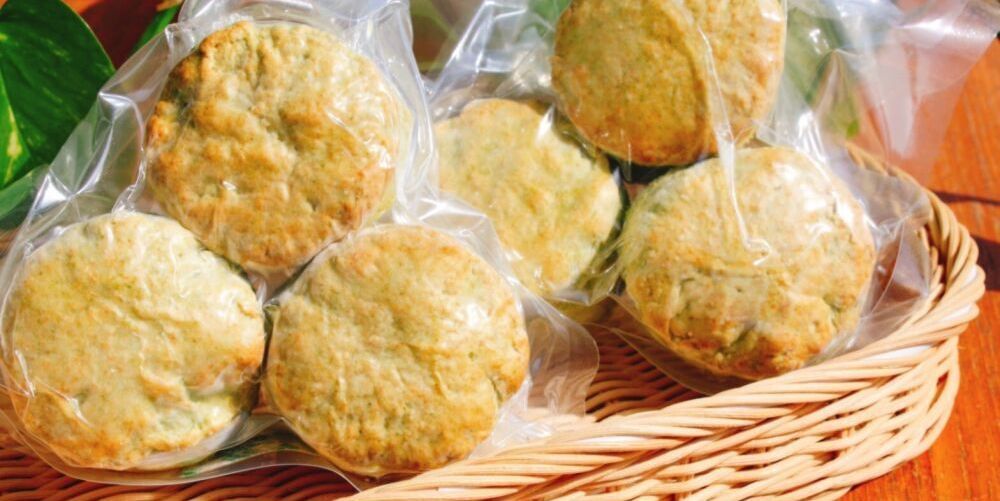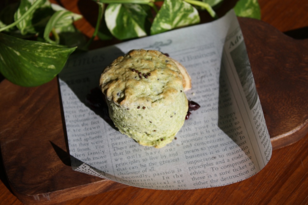水ではなく紅茶で生地をこね、紅茶葉を練り込み