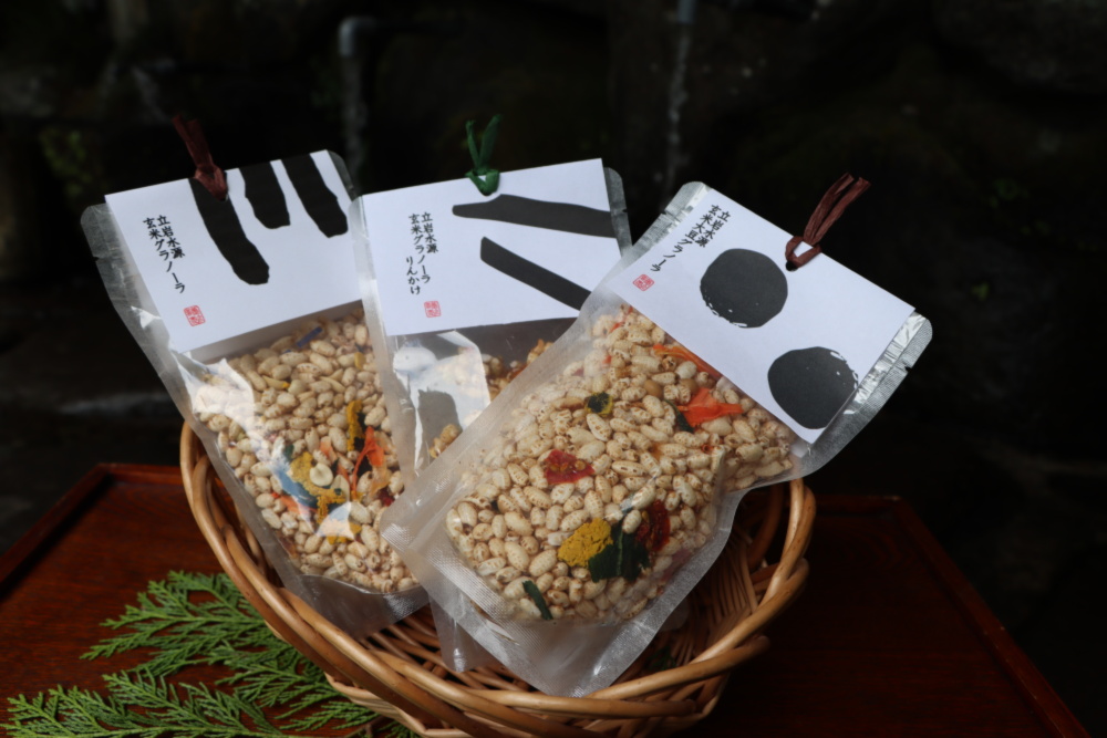 • 砂糖で煮固めた「玄米グラノーラりんかけ」