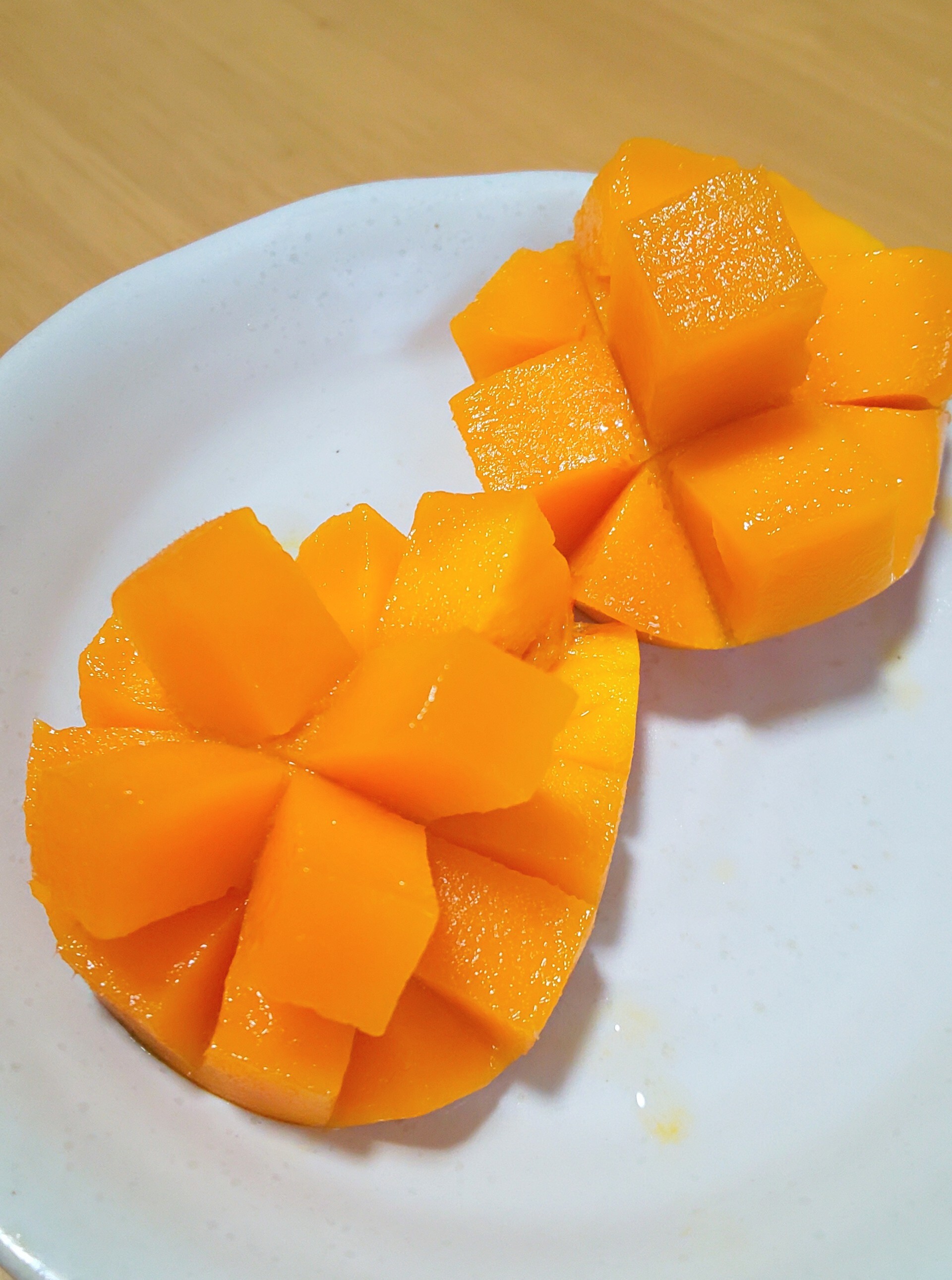 さっそく食べ頃の物をその日にいただいたのですが、小さくても濃厚なマンゴーの味がしっかりして、とても美味しかったです。
