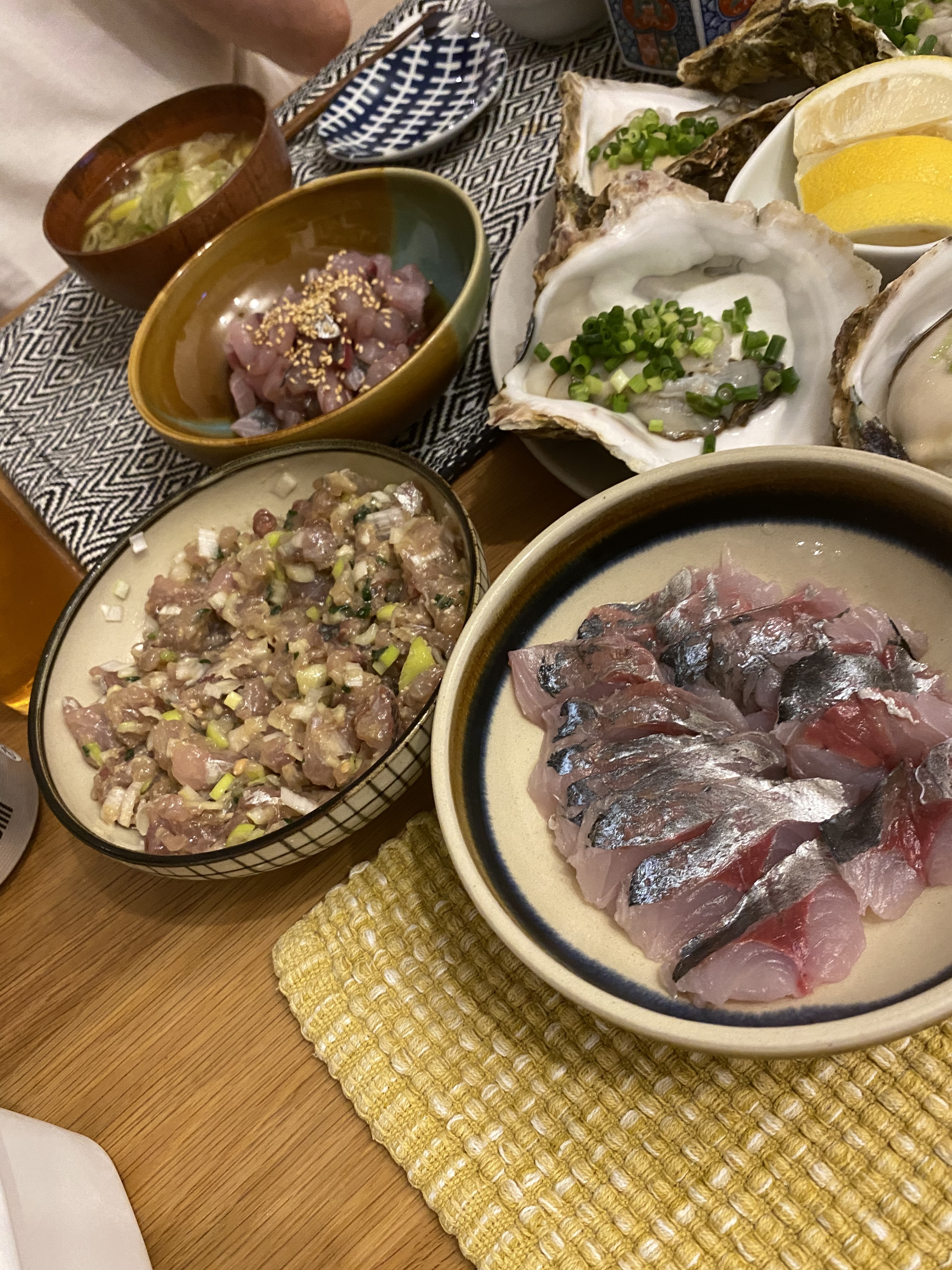人生初の魚捌きの題材となったのは特大アジ。漁師佐々木さんによる動画講座を見ながら、とっても美しくい食べものに仕上げることができたようですね。