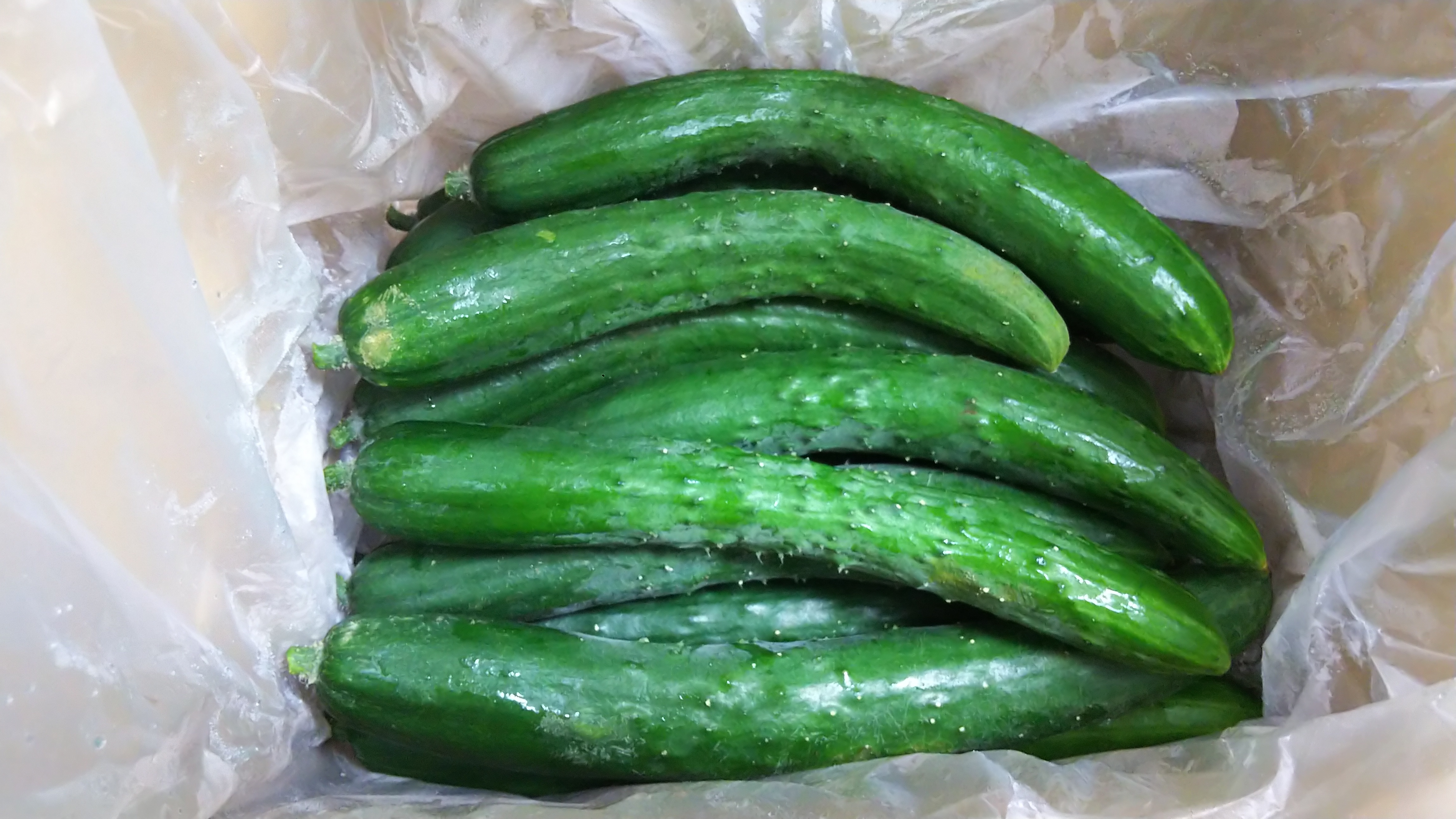 写真を取る前に1本食べてしまいましたが、とても立派なきゅうりが思っていたよりたくさん入っていてビックリしました。