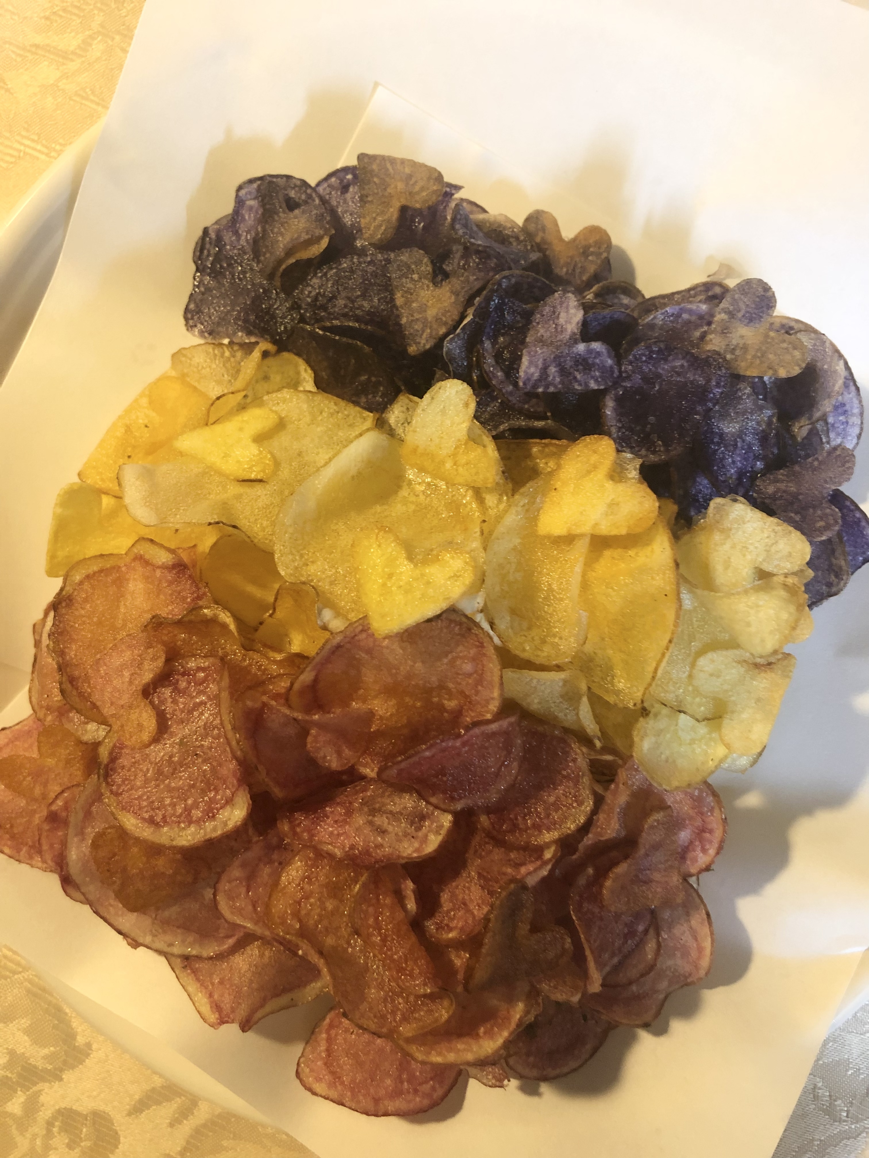 わかいファームさんのカラフル三色セットでチップスを揚げました。