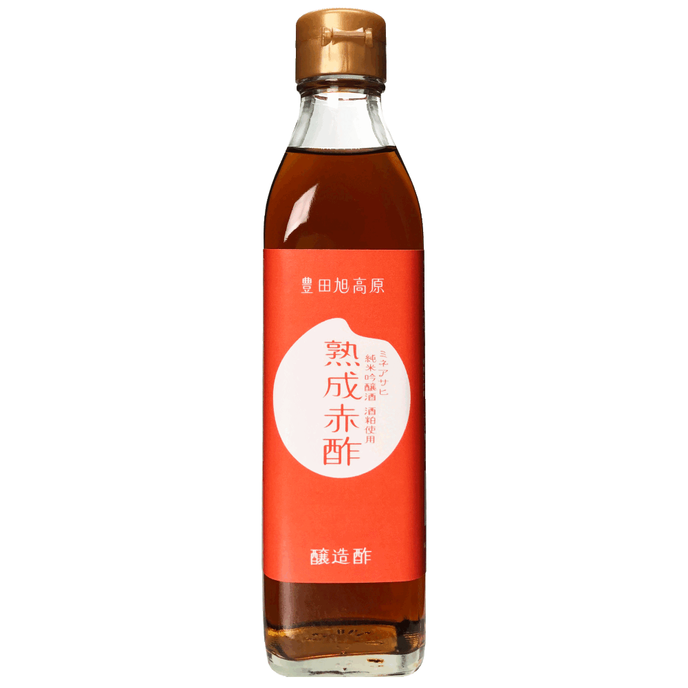 豊田旭高原のきれいな冷たい水で育ったミネアサヒを原料とした純米吟醸酒の酒粕を3年間寝かせてつくった熟成赤酢です。