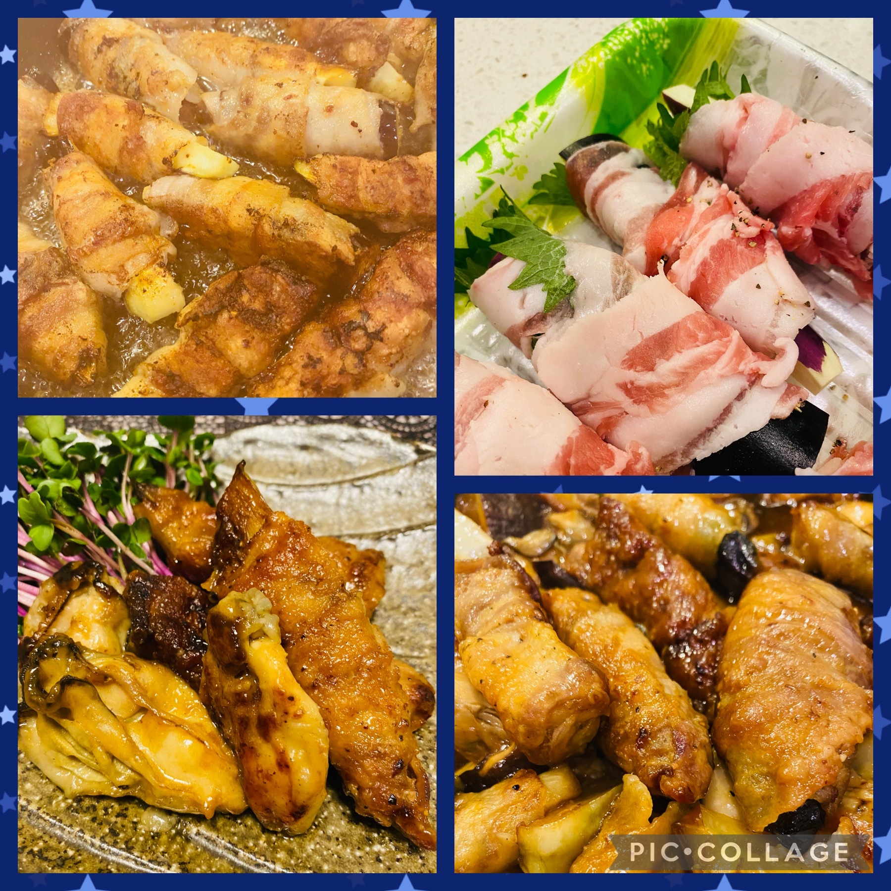 大好きな茄子大葉巻き。かんたん酢オイスターソース絡め炒めて。門林さんの牡蠣も一緒に❤️