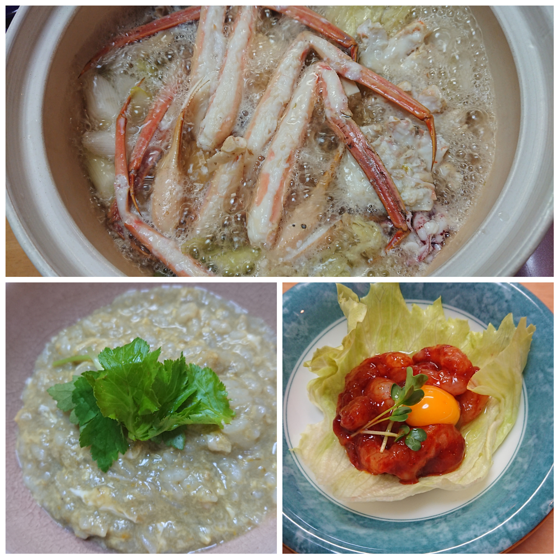 カニ鍋と甘エビのコチュジャン和え。