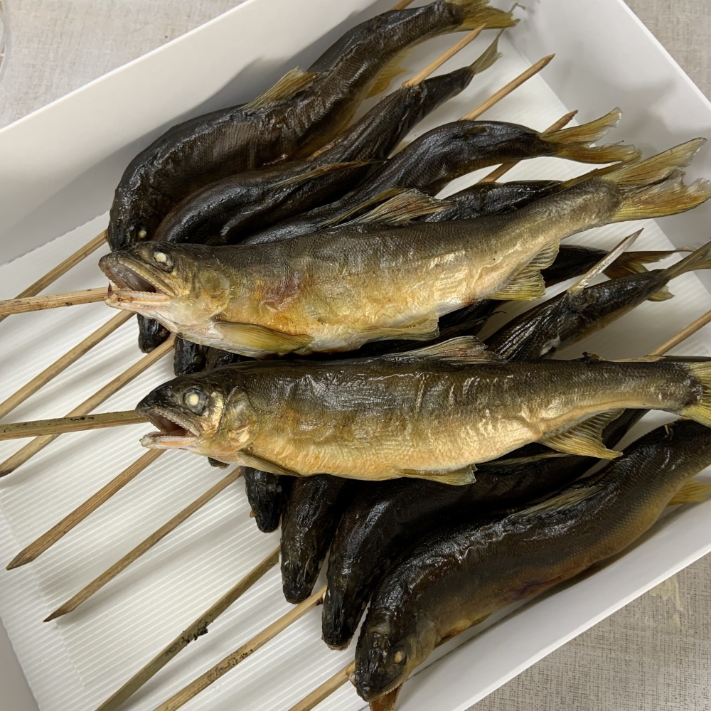 串に刺さった状態の丸焼き鮎に大興奮でした!