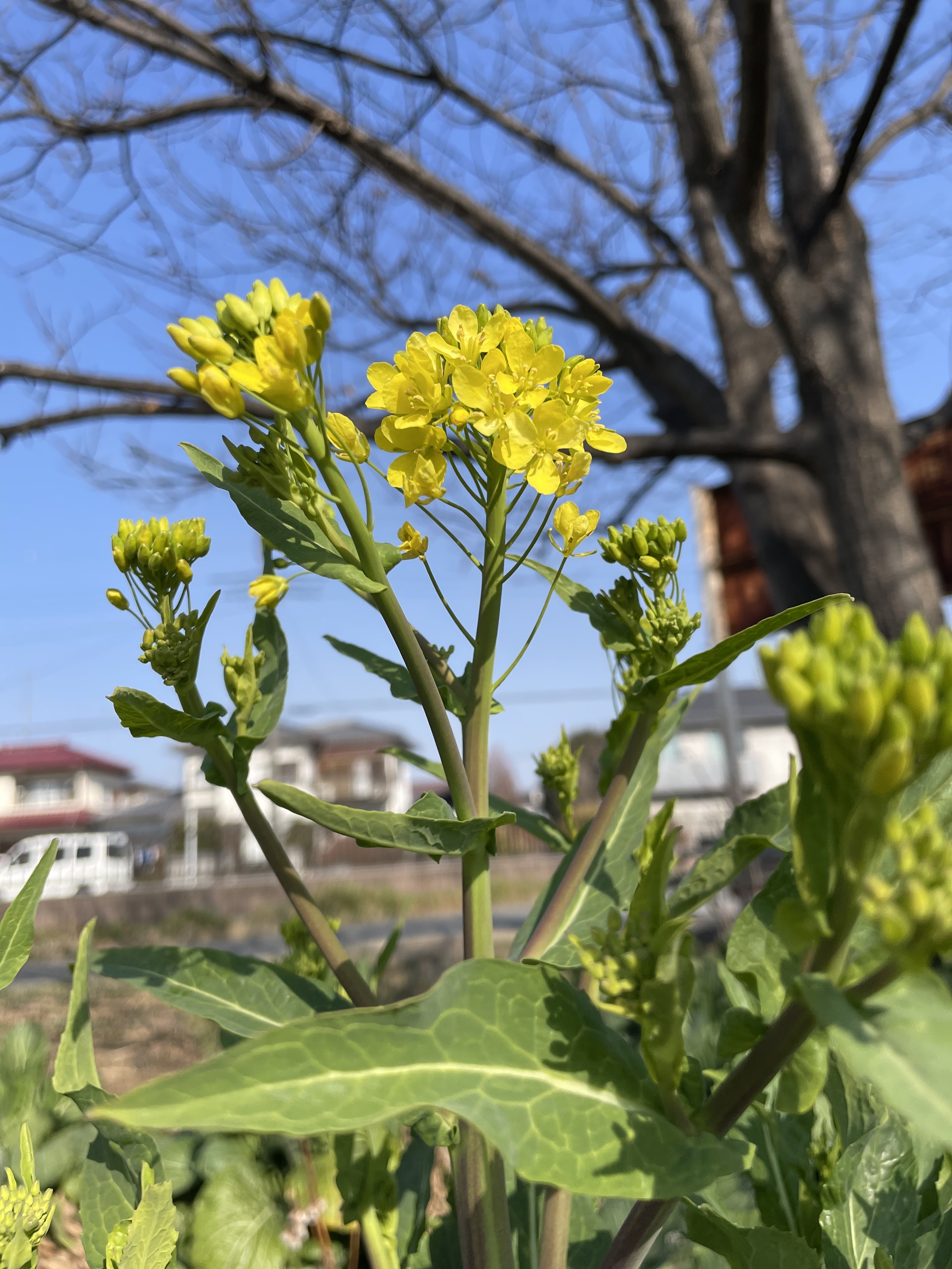 今年の菜花は晩生のもので、ピークが2月に入ってから、そして脇芽が育つ過程で寒い日続き、思うように収穫ができませんでした。 ここに来て本当に暖かいですね!脇芽が、子〜孫〜ひ孫とドンドコ伸びてあっという間に咲いてしまいます。