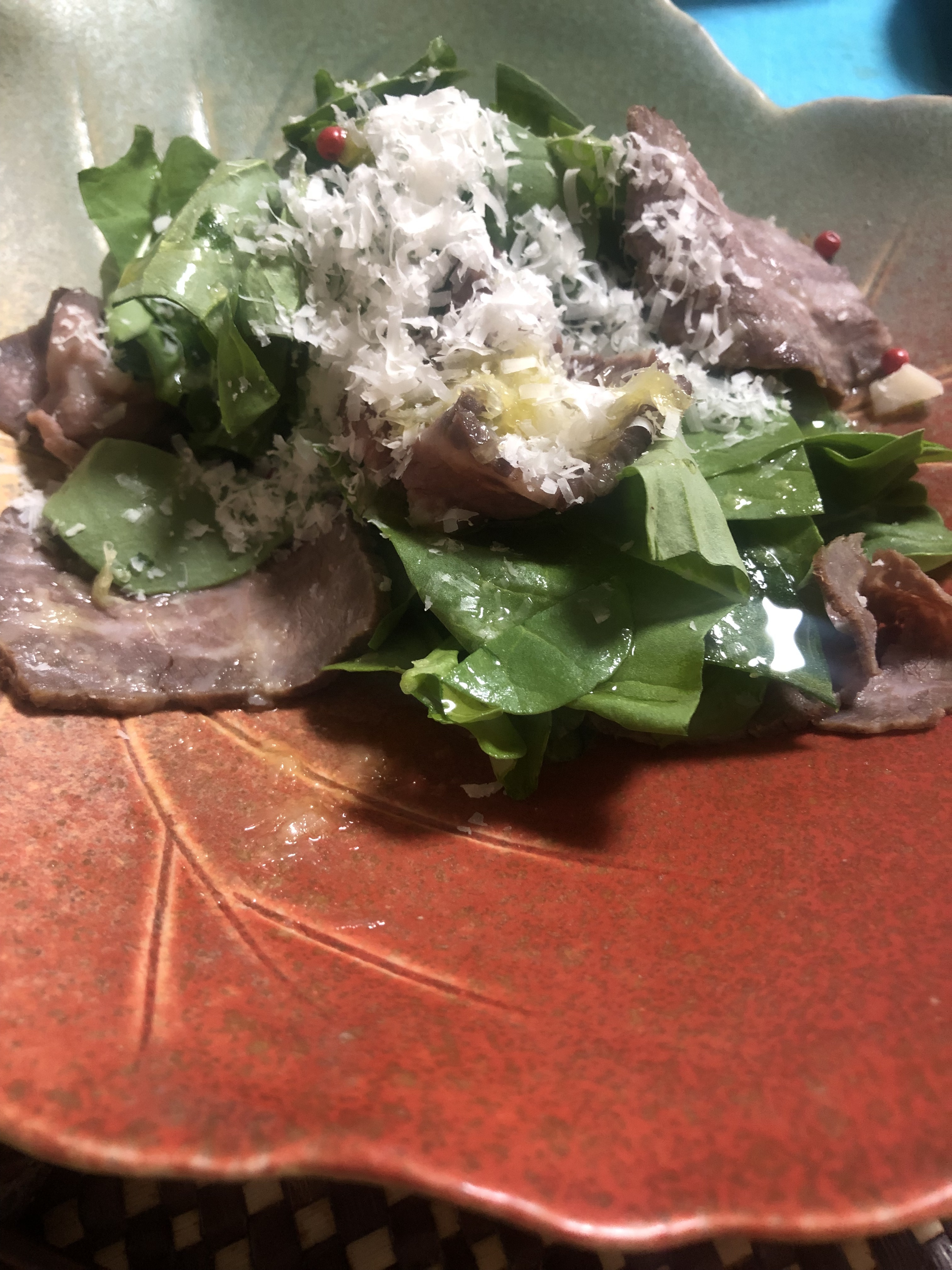 ローストビーフを添えて、パルミジャーノレッジャーノをたくさんすりおろしていただきました。