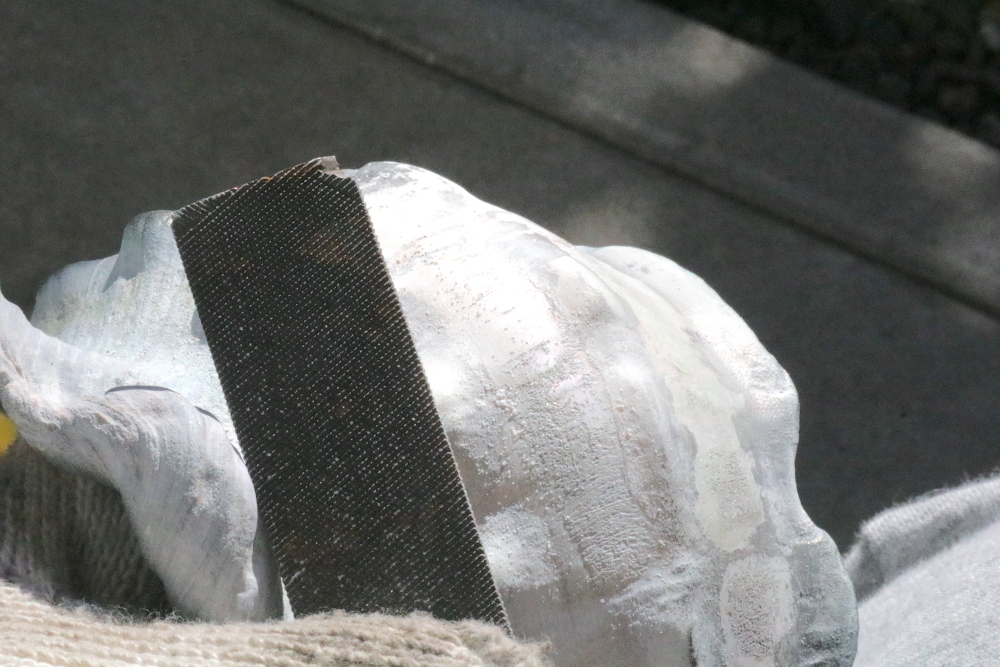 ヤスリは40番程度の粗い目から800番まで揃え、粗い目のヤスリで石灰層を削り、表面を観察しながら少しずつ細かい目に上げていく方針で進めてみたのですが……