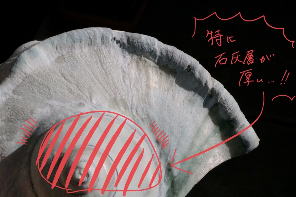 初めての夜光貝研磨なので、この状態の貝殻をよく観察してみました。