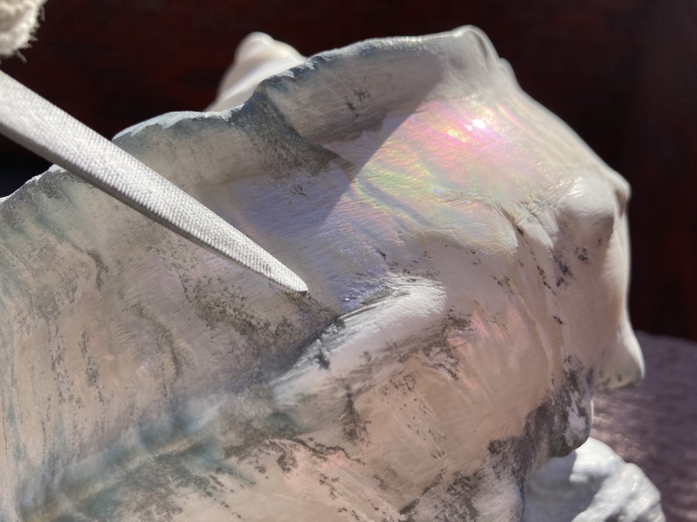 夜光貝の殻は淡い虹色に輝くようになりましたが、これでおしまいにして良いのでしょうか。