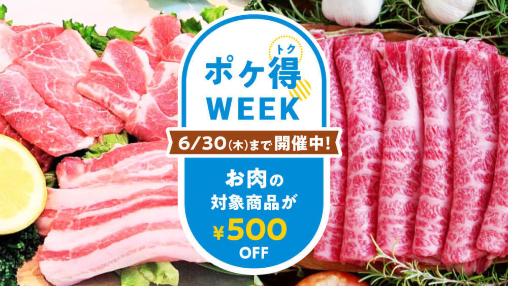 今なら対象のお肉が【500円OFF❗】お得にまとめ買いキャンペーンを達成できるチャンスです♪お肉のポケ得WEEKは6/30(木)まで。お急ぎください💨