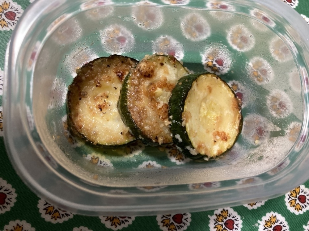 妹にズッキーニは粉チーズを振りかけてソーテーしてもらいました。大変美味しく頂きました。