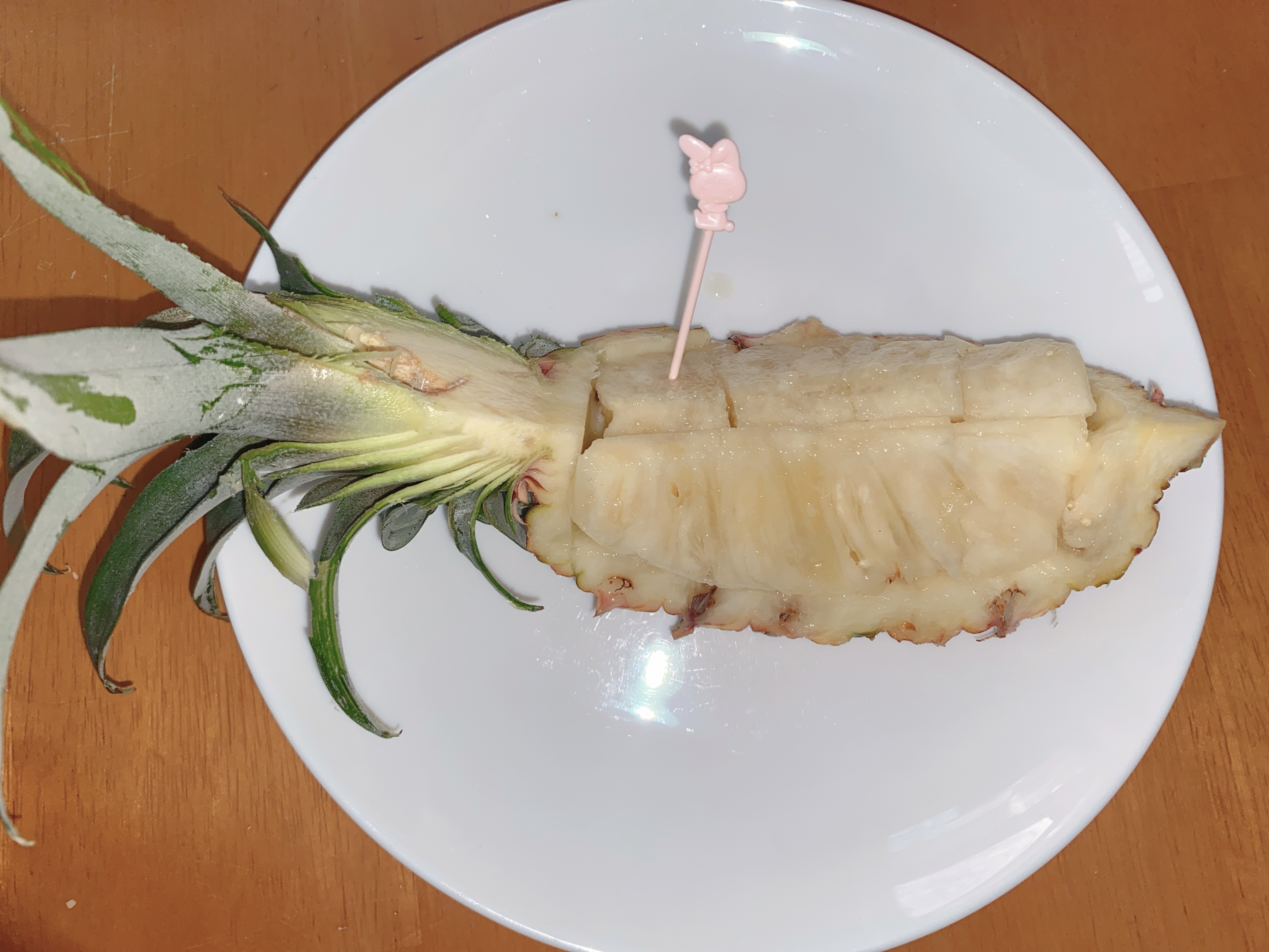 パインのシュウ酸に負けてしまう長女も家族の騒ぎで興味を持ち2つ目のパインで食べたのですが甘さが強いからか舌が痛くならず沢山楽しんで食べる事も出来ました💕