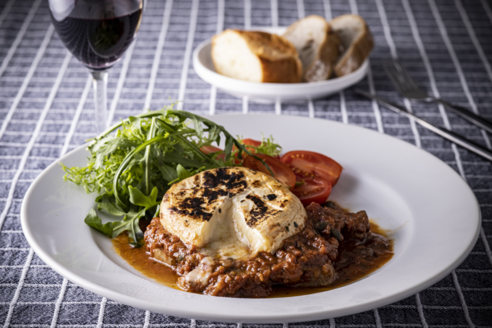 肉厚なお肉の上に、まるごとカマンベールがごろり。