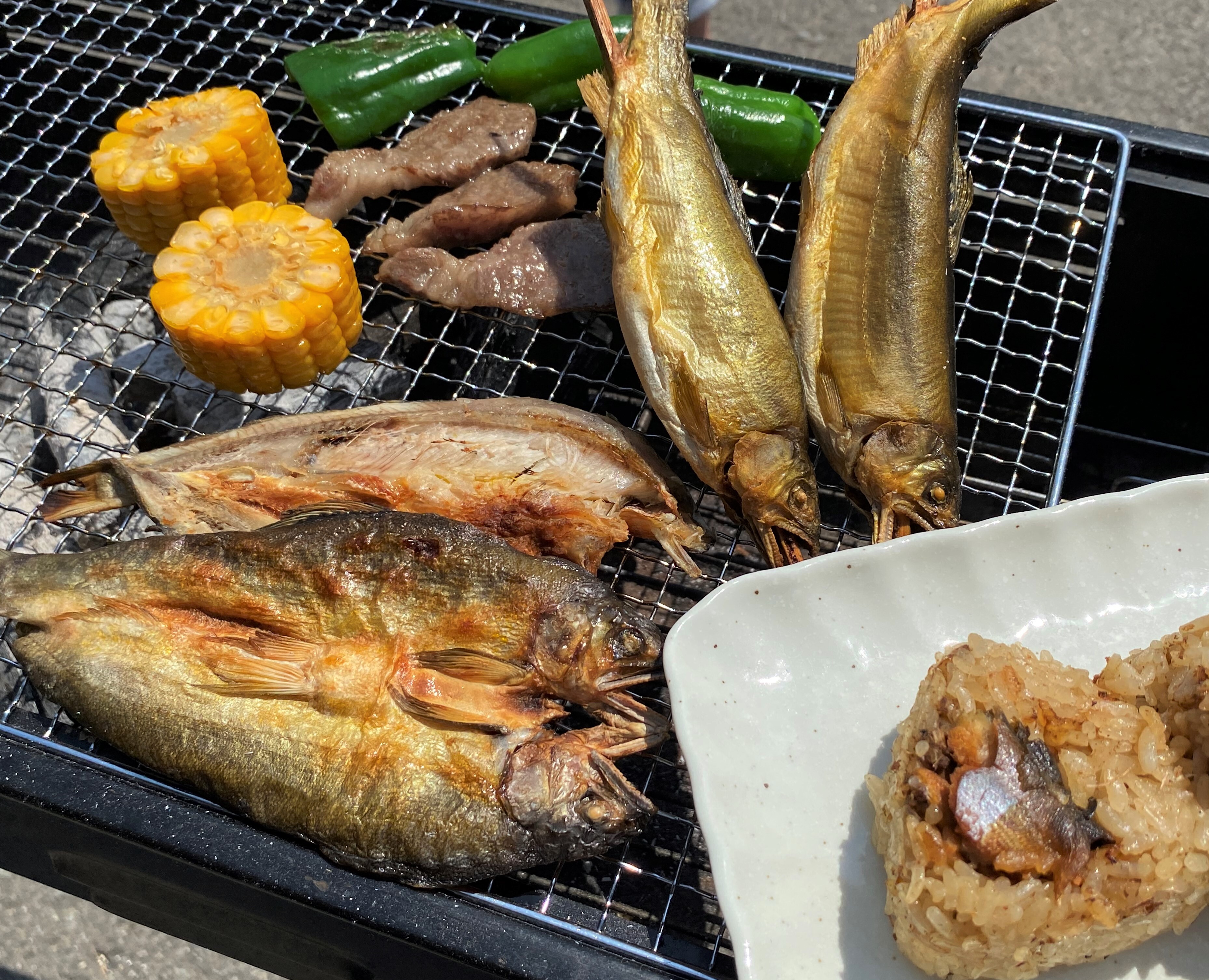 こんな風に鮎尽くしのキャンプごはんを食べるなら