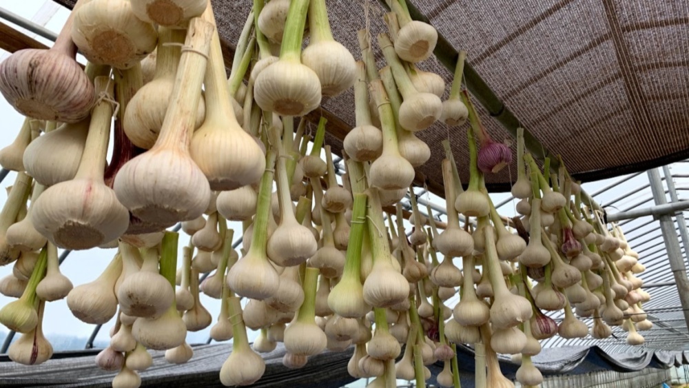 今年5月に収穫された新にんにくを乾燥させたもの。