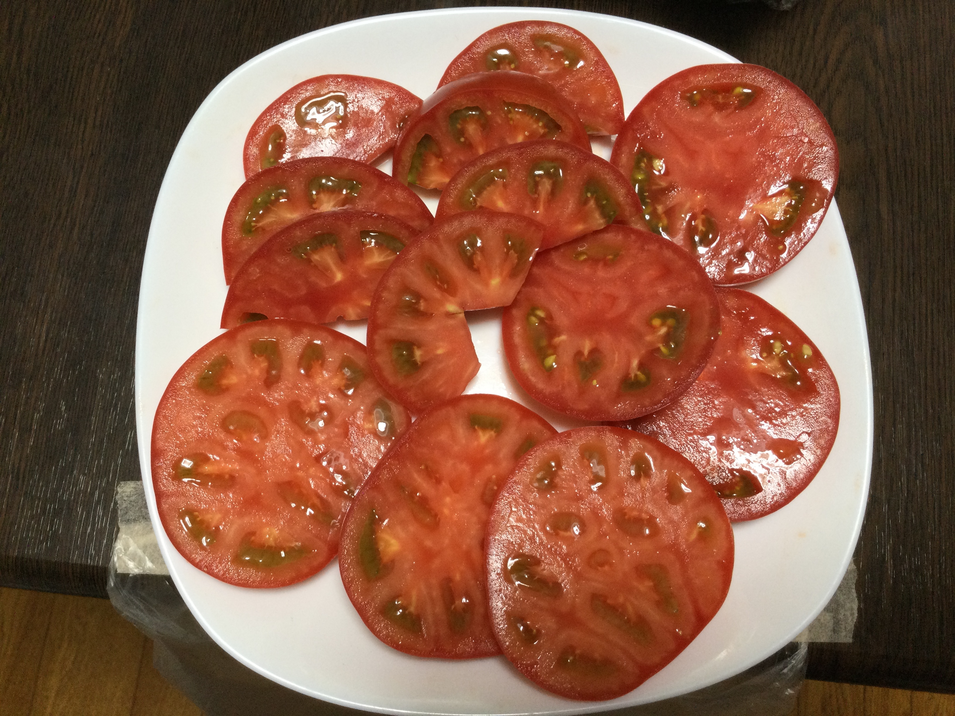 真っ赤なずっしりとした完熟とまと🍅甘みと酸味のバランスが良く美味しかったです。見事なゼリー室は、さやまるに負けず劣らずですね😊スーパーでは、こんなとまと🍅見かけません!鈴木さんおすすめのスライスカットで食べるようにしてます。適度な硬さと食感とジューシーさで、止まりません。暑い中、日本郵便の年配の配達の方が、とまと🍅を保冷バックから出し、笑顔で大切に抱えて渡してくれましたよ!(^^)!良いチーム連携ですね😊無くなったら、またお願いしたいと思っています。