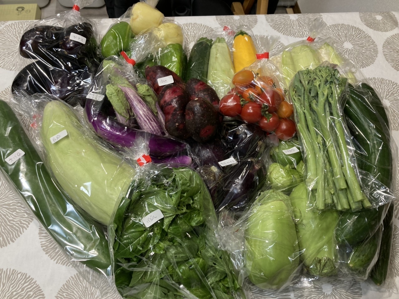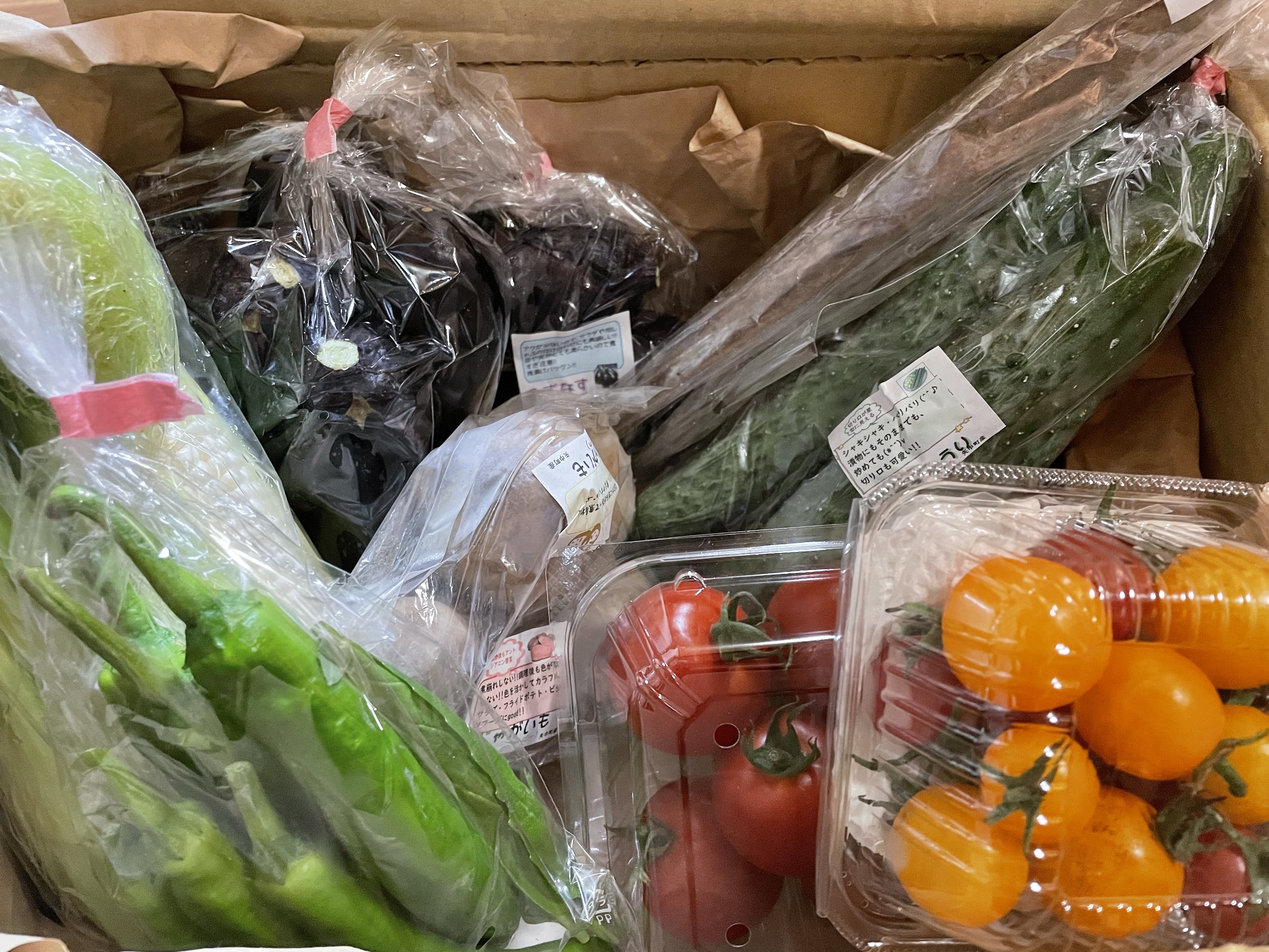 野菜セット受け取りました!ずっしりと思いダンボールの中には、ぎゅうぎゅうに沢山の野菜たちが詰まっていて嬉しくなりました。早速、バルサミコ酢で水茄子のマリネを作りました。ミニトマトは味が濃くて甘さが身体に染み渡ります。