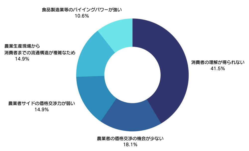 「消費者サイドの理解が得られない」という懸念から、値段を転嫁しづらいと感じている生産者が4割を超えています。