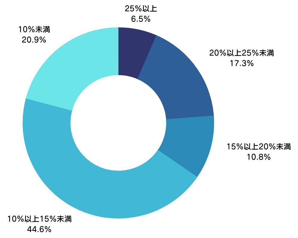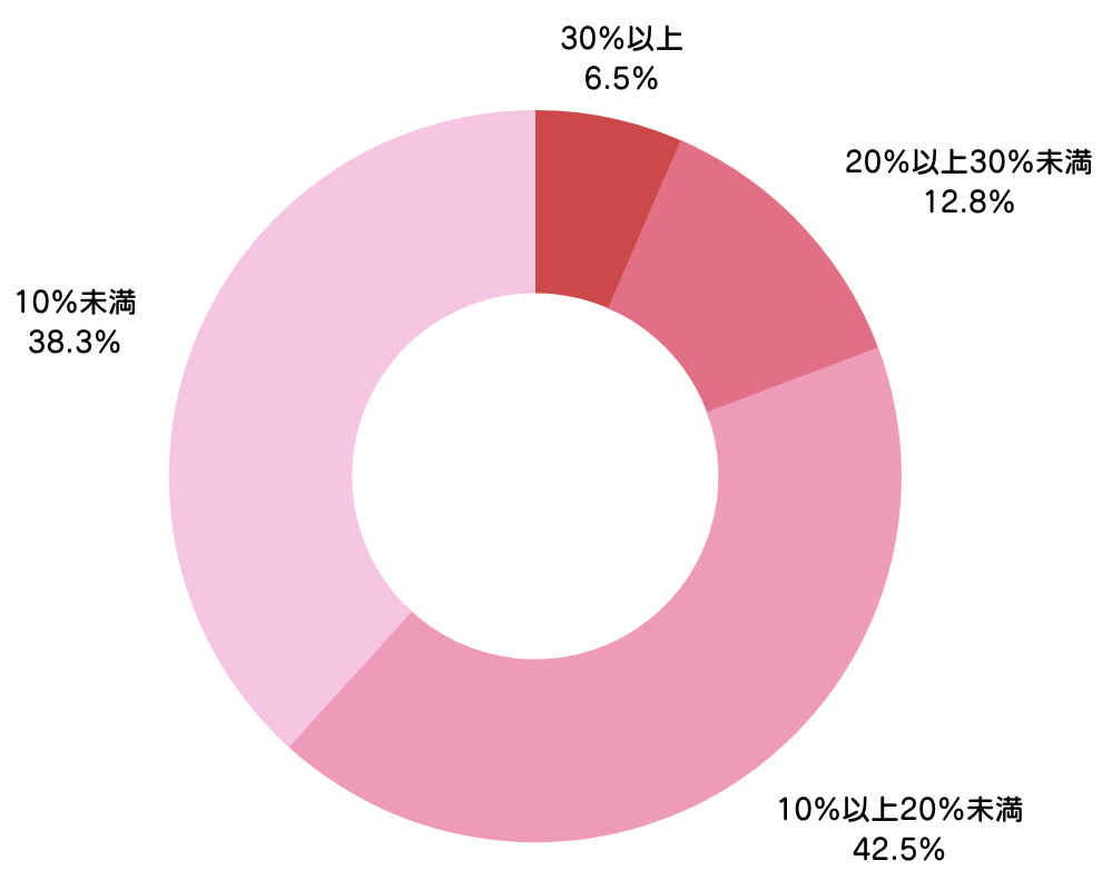 10%以上20%未満が最も多く42.5%、ついで10%未満が38.3%となりました。20%以上の層も19.3%おり、約6割(61.8%)の消費者が10%の値上げを許容できると答えました。