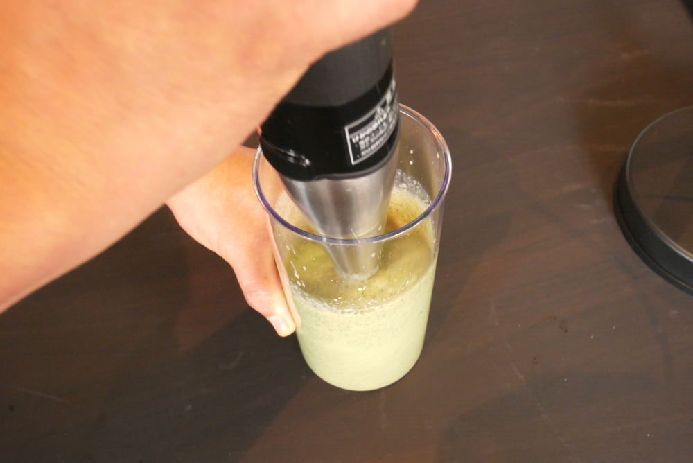 ②牛乳を入れ、ハンドミキサーなどでかき混ぜる