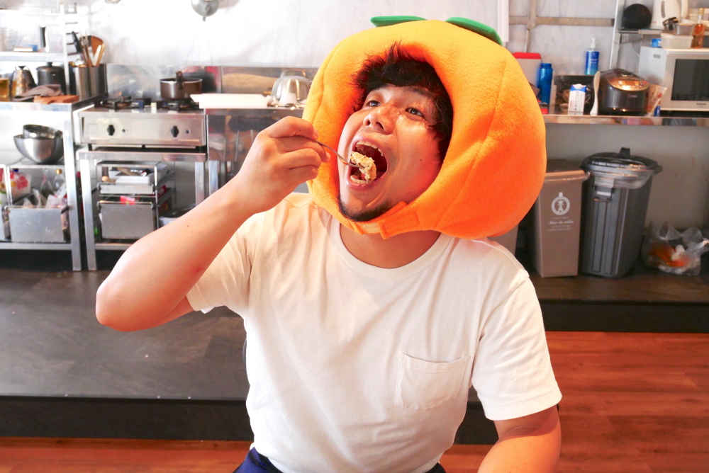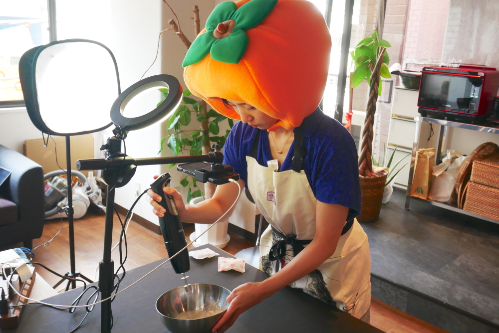 柿チャレンジ3日目、柿マンは甘いものを食べたくなりました。しかし、柿マンはお菓子作りが苦手なようです。そこで、今回は助っ人「柿コ」が来てくれました。