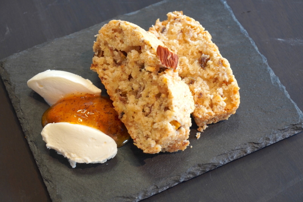 おっ! ケーキはなんだか不思議な食感。生地はしっとりというか……そこにくるみのカリッが良いアクセントになる