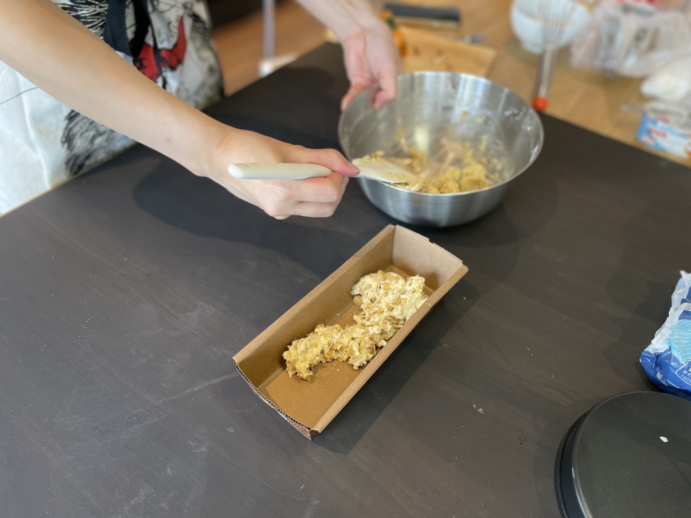 生地は結構硬めで、流し入れるというよりはヘラで押し入れる感じだよ