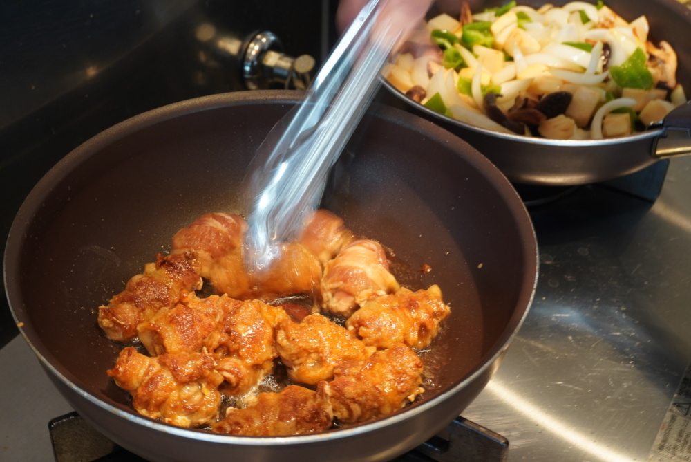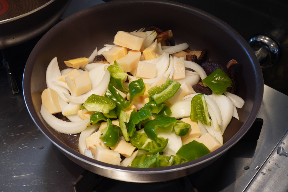 豚肉が冷めると揚げ衣が剥がれやすいから、野菜が炒め終わるのと同じタイミングで揚げ終わるのがベスト!