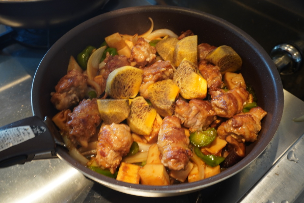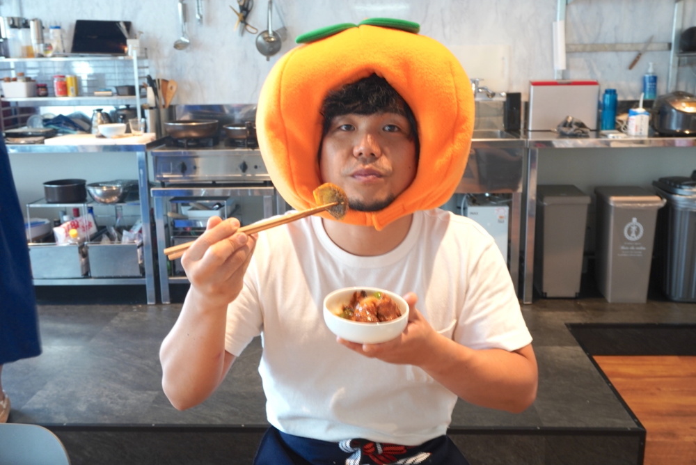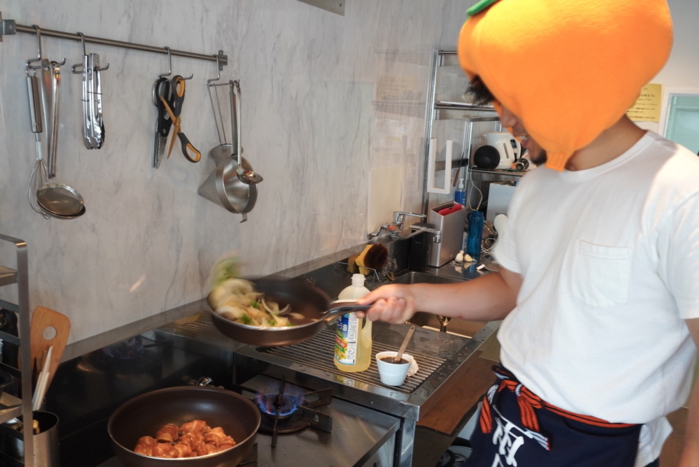 ガッツリ炒め物をしていますが、柿もここに投入するのでしょうか。柿との相性は果たして!?