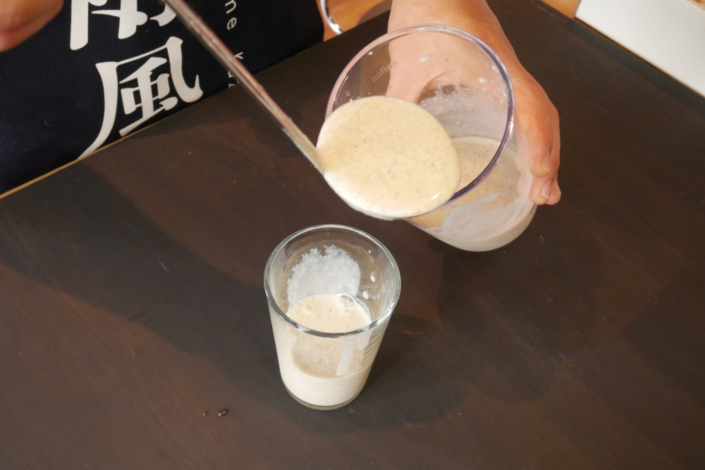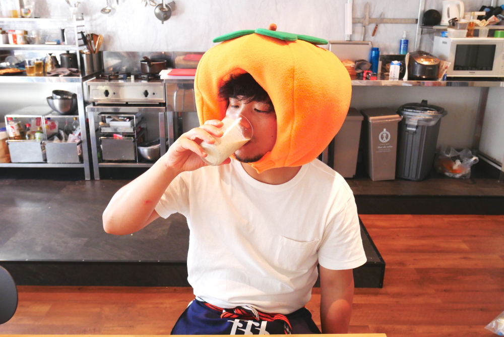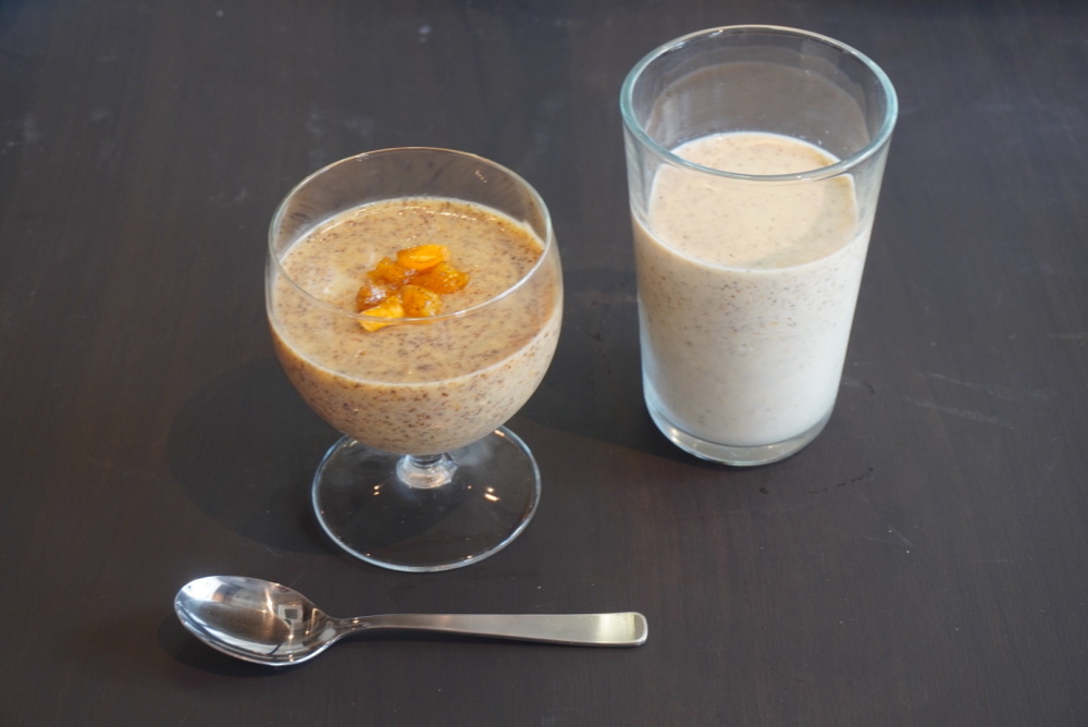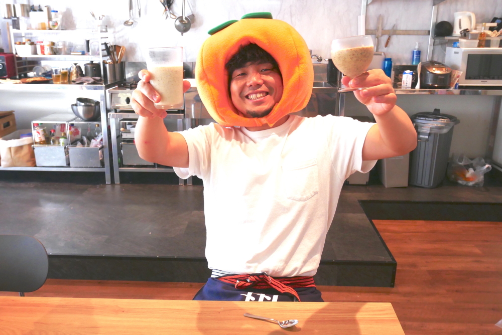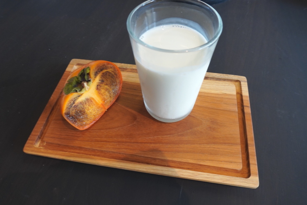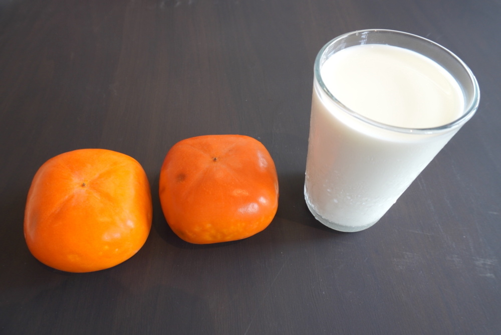 どちらも柿と牛乳だけど、左は飲み物、右は食べ物。まずは柿ミルクをいただきまーす