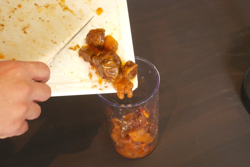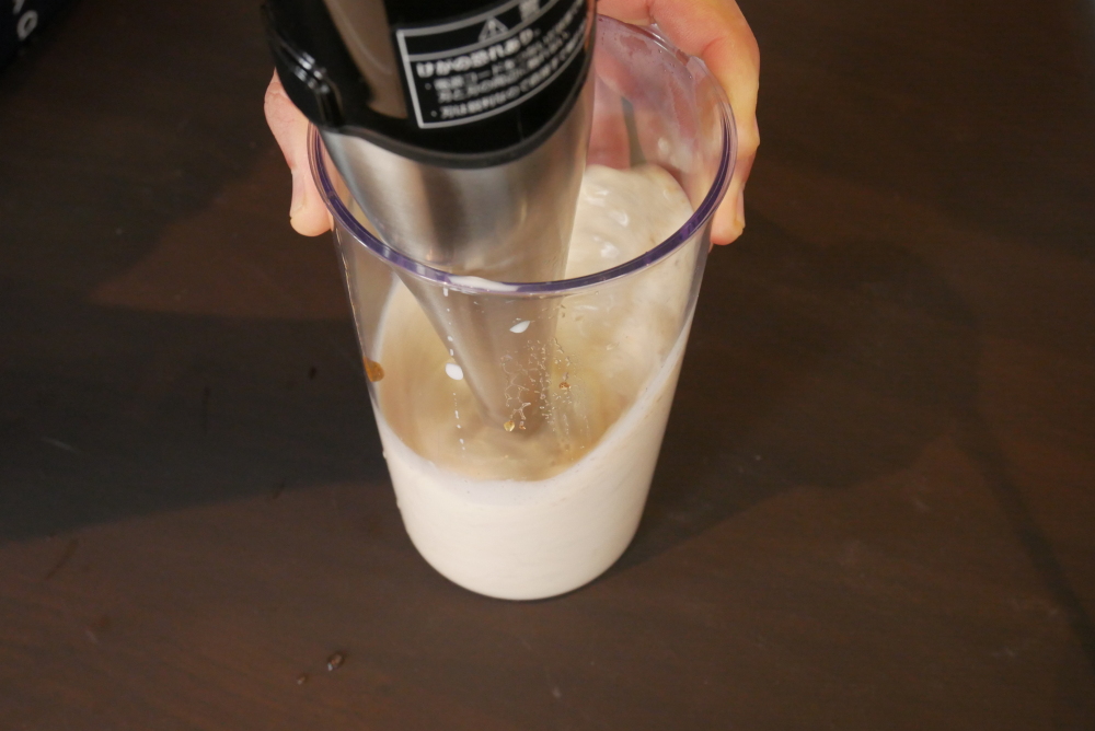 ②柿と牛乳をハンドミキサーなどで攪拌する