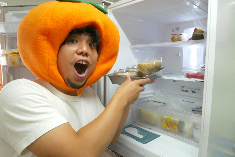 冷蔵庫に手作りスイーツを隠し入れる柿マンを目撃しました。