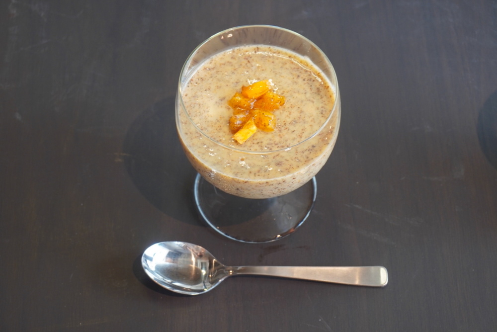 ん、とろとろでおいしい!これは大ヒットだ!柿の分量が多いから、柿ミルクよりも柿の甘みが際立ってる。少し時間がある時は柿の中身をくりぬいて、それを器にして作ったらオシャレだろうなあ