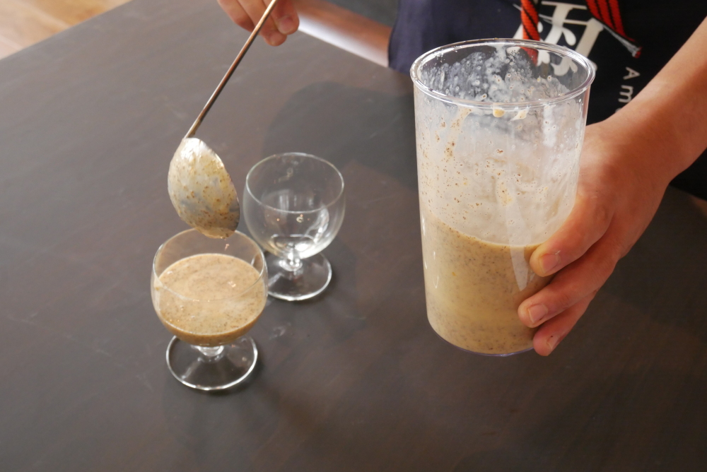 気づいたかな?柿ミルクと材料は同じで、柿と牛乳の配合が違うだけ。作り方もほぼ同じだから、一緒に作っちゃうと楽だよ