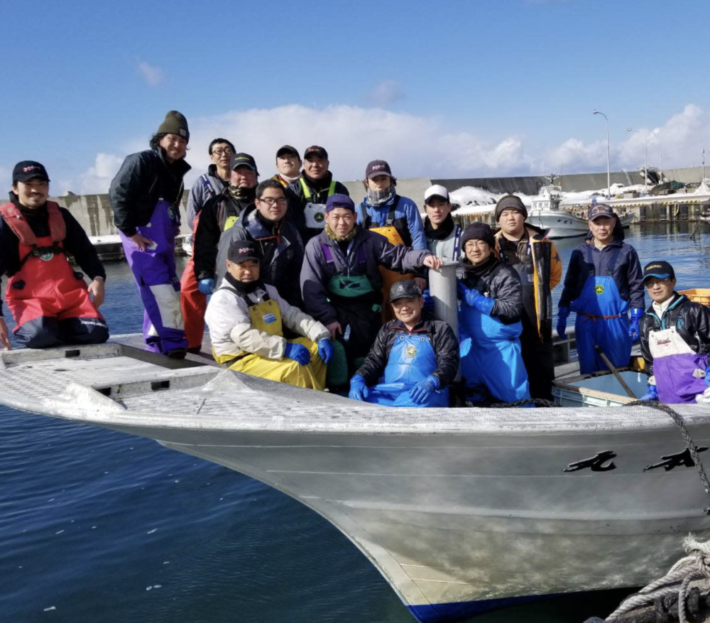 fishdoorは、秋田県最北端の港、岩館漁港に属する若手漁師の団体です。秋田の魚介類は全国的に見てもまだまだ無名だと思いますが、日本海の厳しい寒さと荒波にもまれた魚介類は、有名どころの魚と比べても退けをとらないと思っています。皆様にも是非一度、秋田産の魚介類を味わっていただけたらなと思います。