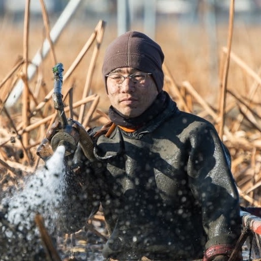 シャキシャキ感と甘みがたまらないと評判のレンコンを栽培する、レンコン農家三代目の栗又孝行さん。