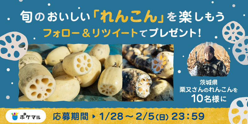 ポケマルスタッフにも大人気💓栗又さんのれんこん2キロが当たる!【ポケマル公式Twitter】プレゼントキャンペーン開始🎉